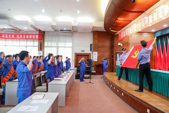 “我志愿加入中國共產(chǎn)黨,擁護黨的綱領(lǐng),遵守黨的章程……”在何董的帶領(lǐng)下,公司新黨員面向鮮艷的黨旗莊嚴(yán)宣誓,與會黨員們也一同重溫了入黨誓詞。