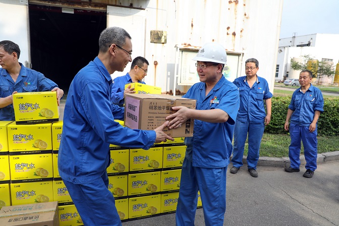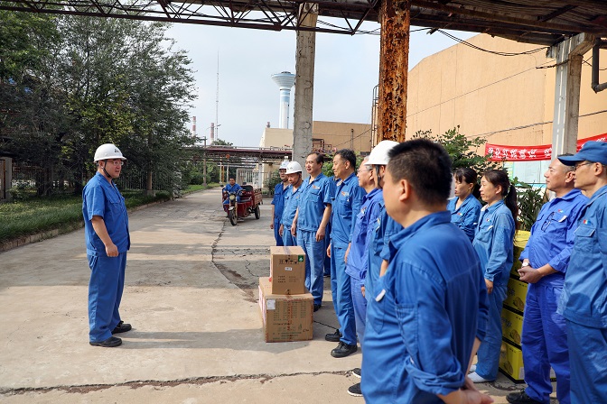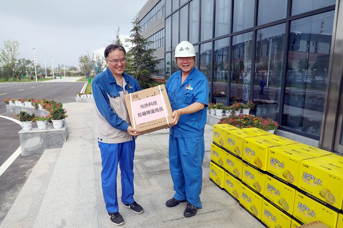 公司黨委副書記、總經理陳志剛帶隊,先后來到動力廠、裝備制造廠、CNG加氣站、光熱科技、光伏新材料和安彩能源,為一線職工送去飲料、菊花茶、風油精、藿香正氣水、仁丹等防暑降溫藥品和物資,確保生產安全,職工平安度夏。